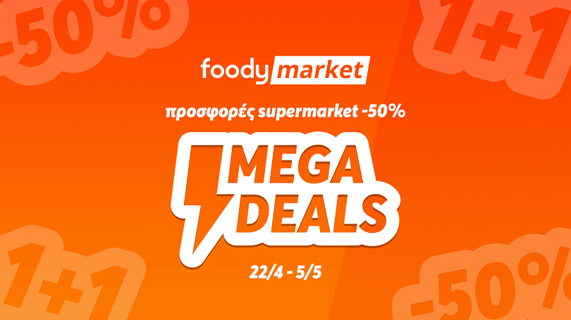 As of April 22, and for two weeks thereafter, Foody is offering “Mega Deals” with reduced prices on hundreds of products from its Market. More specifically, discounts of up to 50 per cent, 1+1 options and other Mega Deals on branded supermarket goods in all categories of Foody Market.